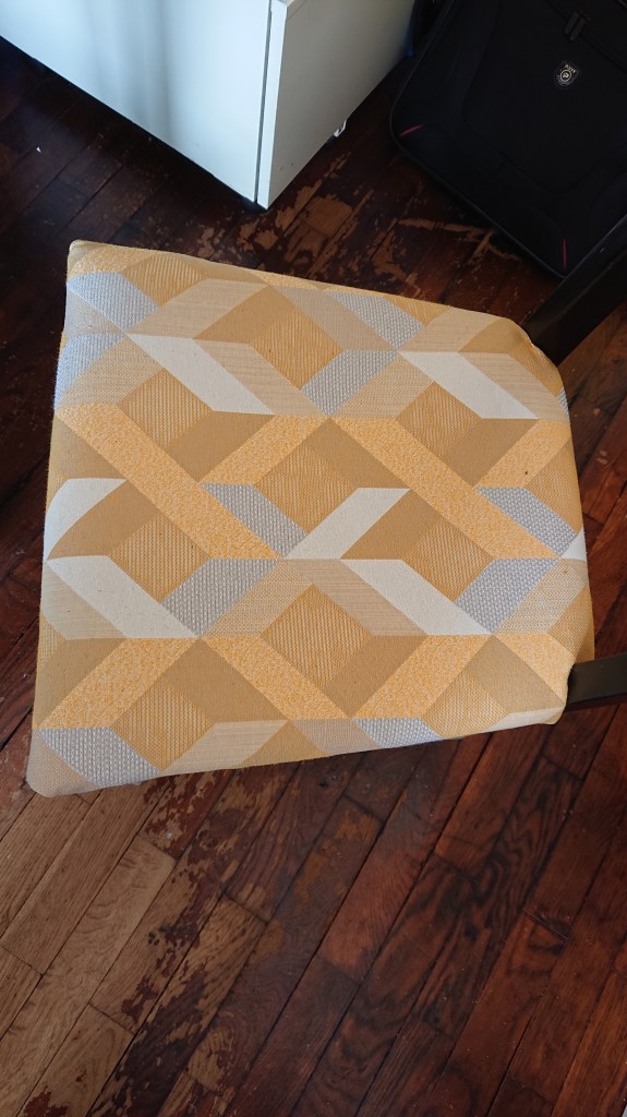 Le revêtement des assises de nos chaises était taché, j’ai donc décidé des les refaire moi-même.
