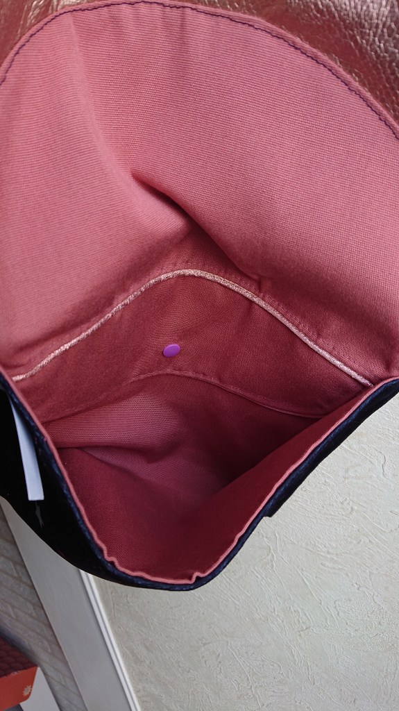 Pour la confectionner, j’ai utilisé le coupon « Super-Maman », un simili cuir Serpent d’un joli rose gold intense, de la toile plein air couleur vieux rose, du passepoil lamé et pour la poche intérieur j’ai utilisé un tissu en coton crétonne que vous pouvez retrouver ici. J’ai acheté l’ensemble des tissus sur le site Ma Petite Mercerie.