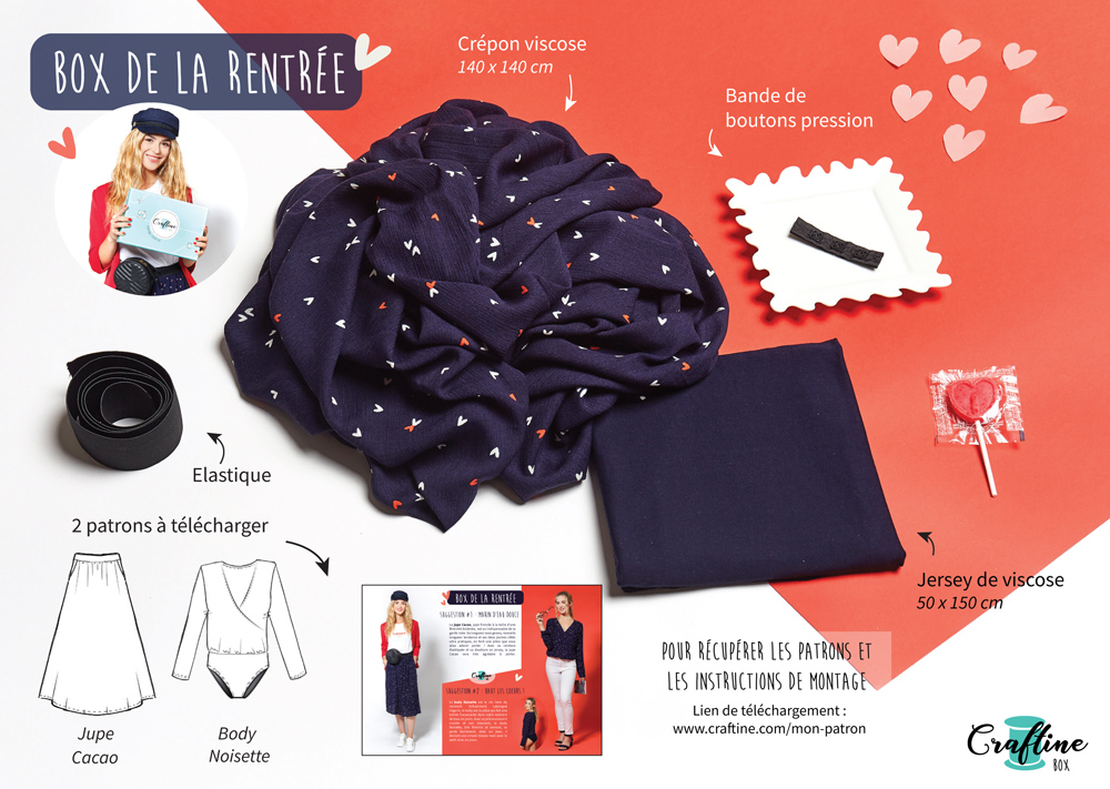 Pour rappel la box Craftine est un abonnement pour lequel vous recevez une box tous les 2 mois. Dans cette box vous retrouvez les tissus et la mercerie pour confectionner l’un des patrons couture proposé. Le livret explicatif est très détaillé pour réaliser votre tenue sans trop de difficulté.