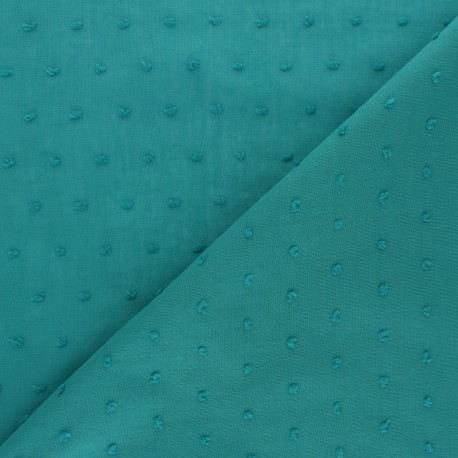 Qui dit 40 ans de mariage, dit noce d’émeraude. Pour confectionner cette robe j’ai sélectionné un tissu voile de coton Plumetis de couleur vert émeraude pour le clin d’œil. J’ai trouvé ce tissu chez Ma Petite Mercerie.